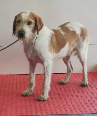 Beagle - Bóxer Nico , necesita conocer a la gente antes de mostrar afecto , probablemente por el tipo de vida que ha llevado