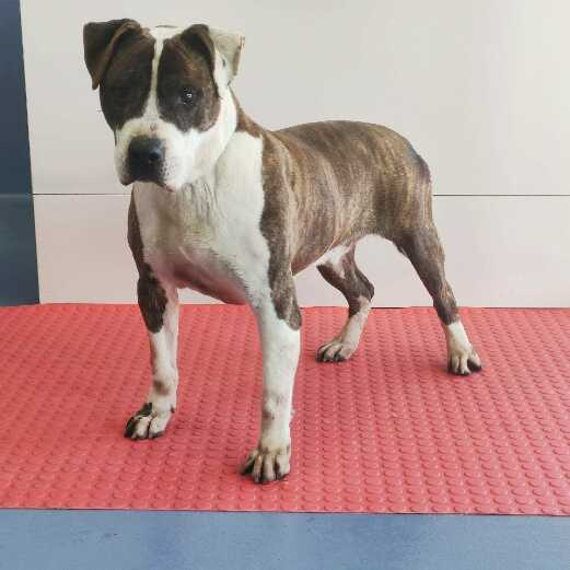 American Staffordshire Terrier Un PPP de mediana edad de caracter serio, reservado, necesita una familia con experiencia.