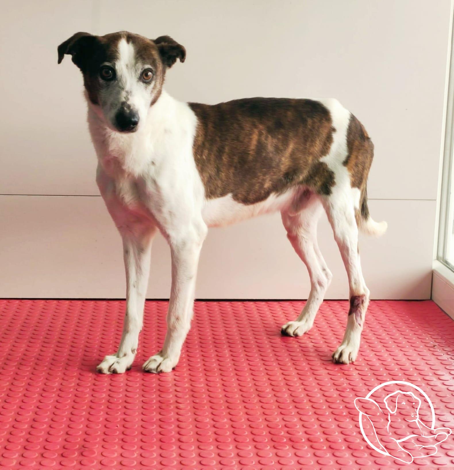Mestizo - Galgo español Mestizo de galgo super bueno de tamaño medio. Puede vivir con machos y hembras. Quier un nuevo hogar